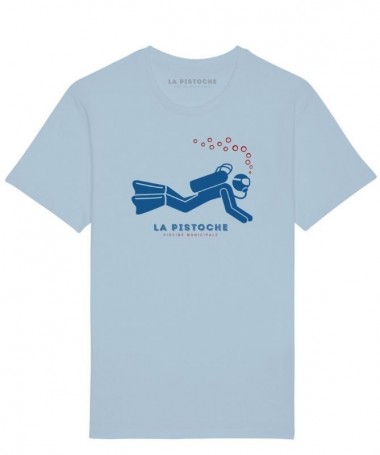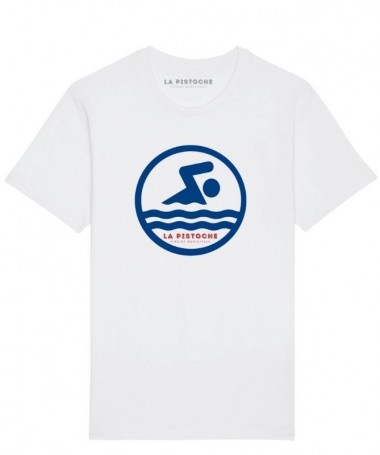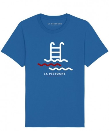 T-Shirt bleu royal motif "Echelle de piscine" imprimé